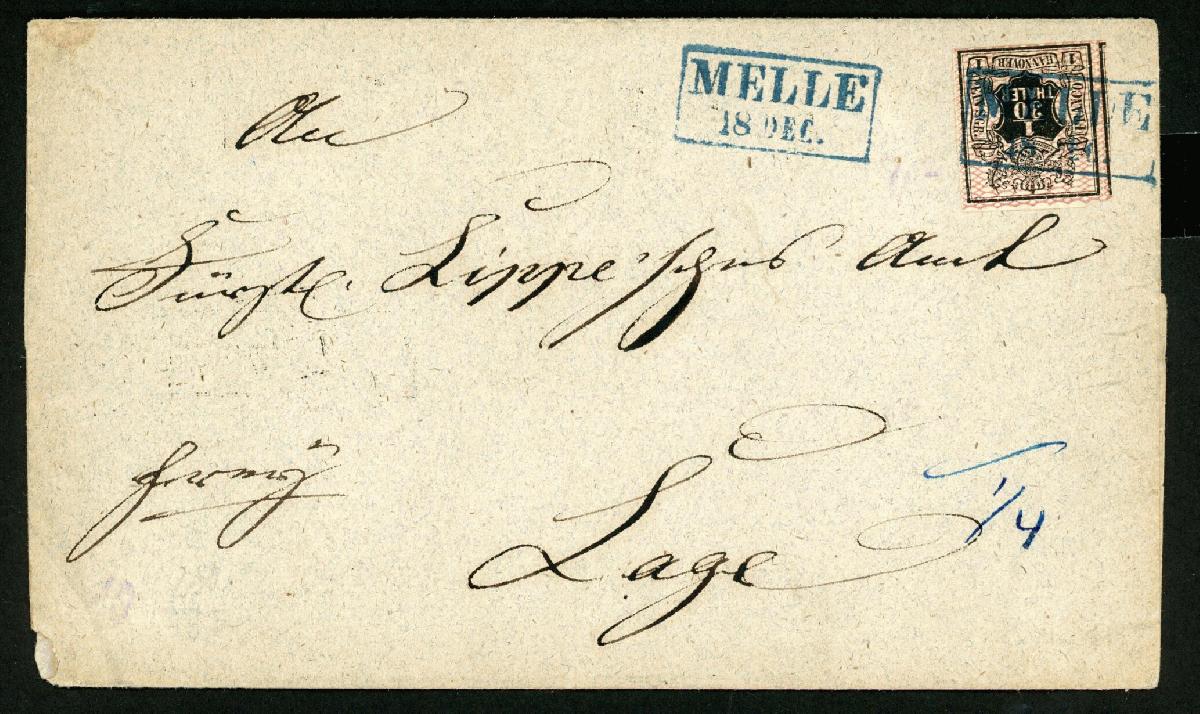 | Zusatzinformationen und Suchstichworte: | Klüttermann - 4. Auktion Auktionstermin: 28. Juli - 5. August 2022 Los 685 Altdeutschland Hannover 1/30 Th. schw./rosa, voll- bis überrandig auf Brief mit klarem blauen Ra2 MELLE nach Lage mit blauer Zustellungstaxe, KB Berger "einwandfrei" Ausruf 60,00 EUR |