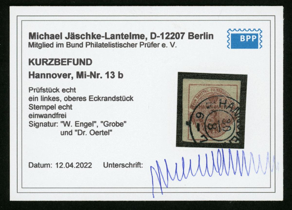 | Prüfer: | Jäschke-Lantelme, Michael (BPP (Bund Philatelistischer Prüfer)) |