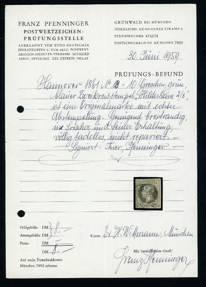 | Zusatzinformationen und Suchstichworte: | Klüttermann - 4. Auktion Auktionstermin: 28. Juli - 5. August 2022 Los 735 Altdeutschland Hannover 10 Gr. grün, gleichm. voll- bis breitrd. Luxusstück mit sauberem blauen K2 HILDESHEIM, sign. und FA Pfenninger Katalogwert: 1700 Zuschlag 390,00 EUR |