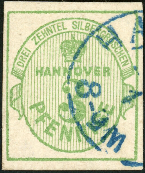 | Zusatzinformationen und Suchstichworte: | Klüttermann - 4. Auktion Auktionstermin: 28. Juli - 5. August 2022 Los 744 Altdeutschland Hannover 3 Pfge. grün, voll- bis breitrd. Kab-Stück mit bl. K2 HANNOVER, sign. Pfenninger mit Attest Katalogwert: 1200 Ausruf 450,00 EUR |