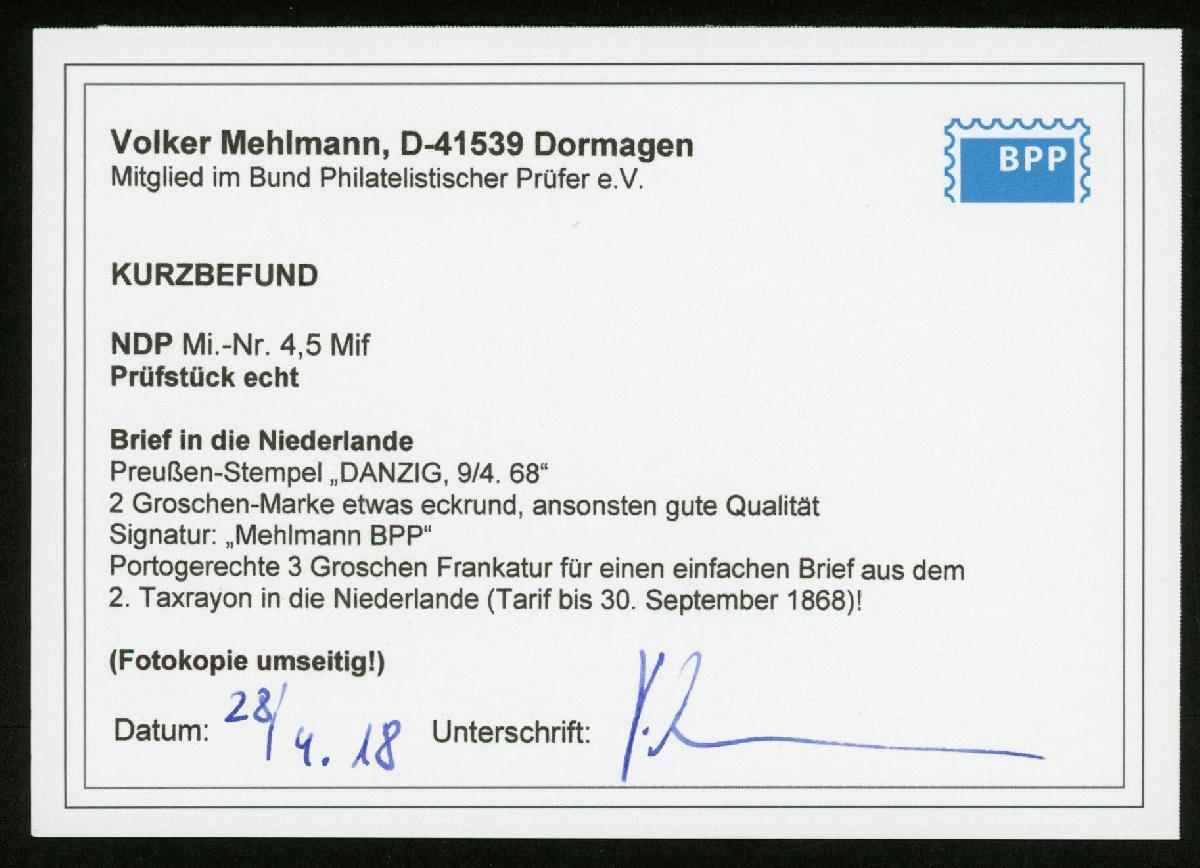 | Prüfgebiet: | Norddeutscher Postbezirk 1868 - 1871 |