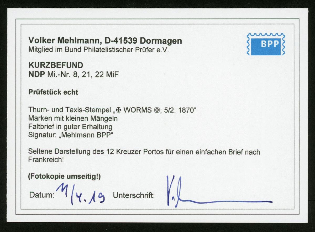 | Prüfgebiet: | Norddeutscher Postbezirk 1868 - 1871 |