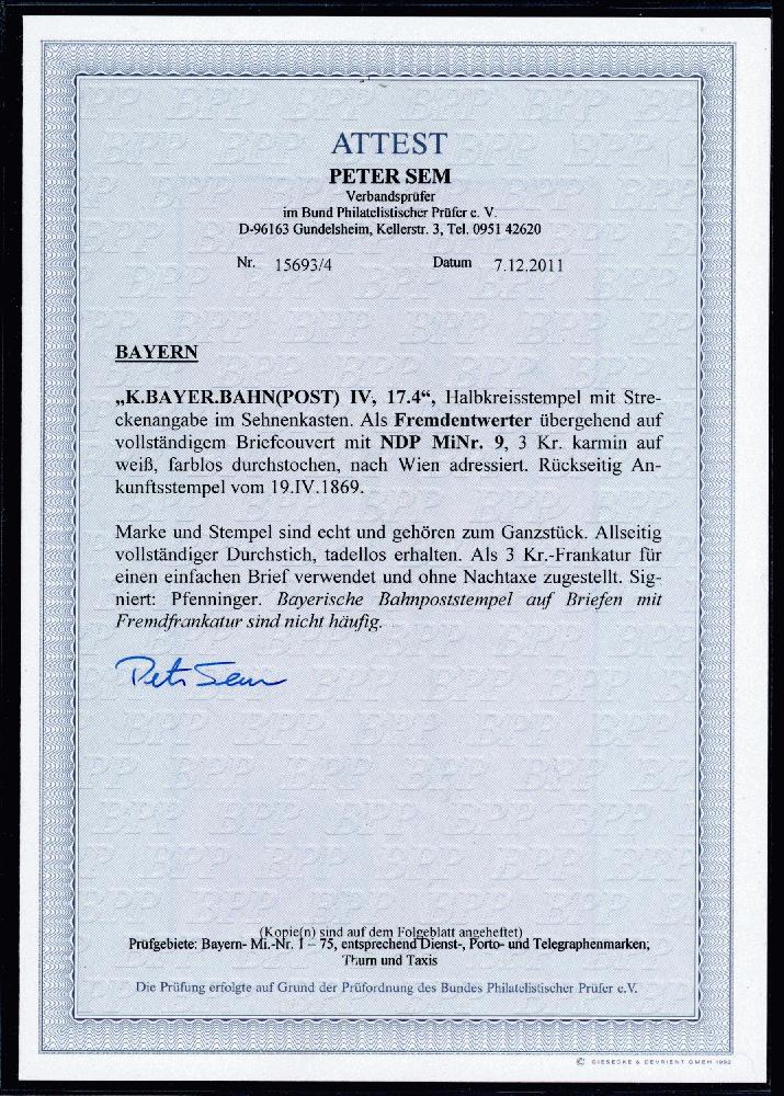 | Zusatzinformationen und Suchstichworte: | Klüttermann - 4. Auktion Auktionstermin: 28. Juli - 5. August 2022 Los 827 Altdeutschland Norddeutscher Postbezirk 3 Kr. a. Kab-Brief mit seltener Fremdentwertung durch Bayrischen BP-HK K.BAYER.BAHNPOST IV, Liebhaberstück, FA Sem Ausruf 350,00 EUR |