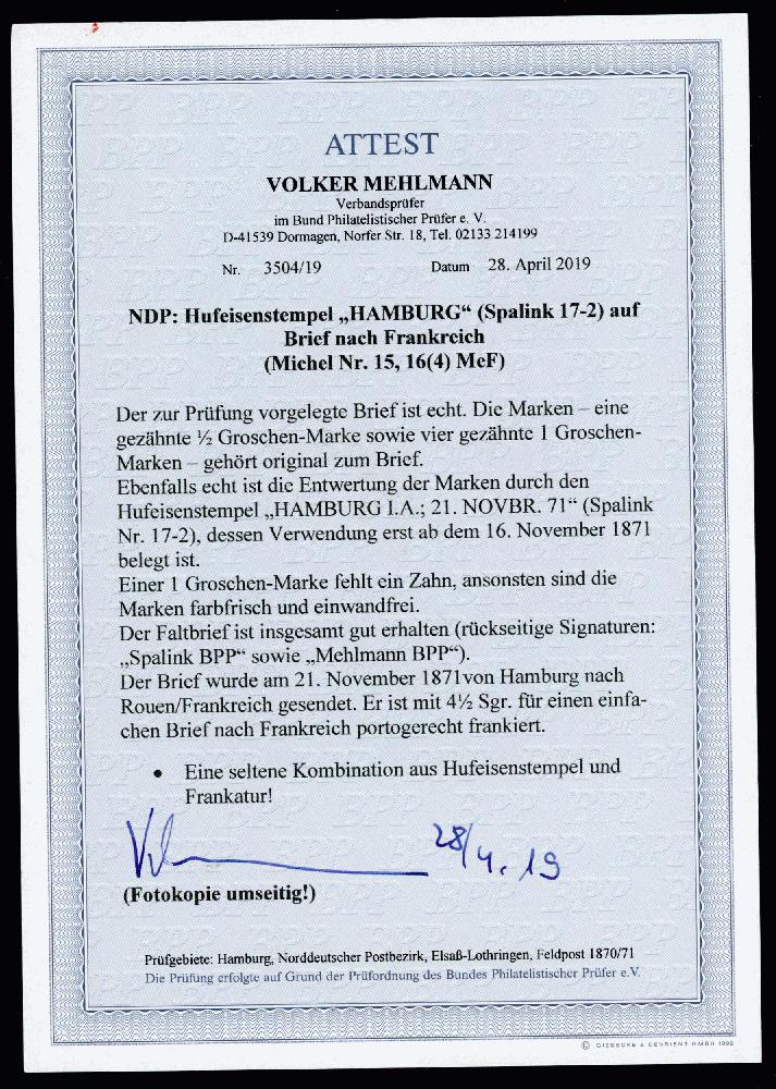 | Prüfer: | Mehlmann, Volker (BPP (Bund Philatelistischer Prüfer)) |