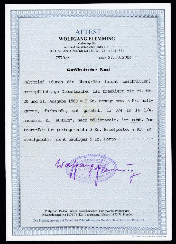 | Prüfgebiet: | Norddeutscher Postbezirk 1868 - 1871 |