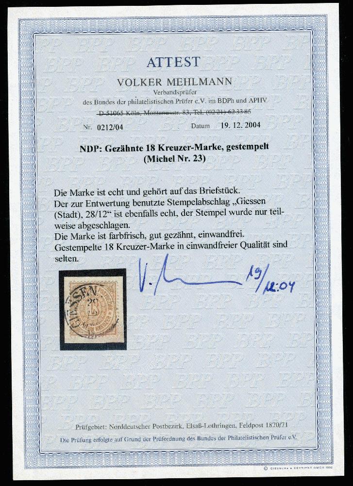 | Prüfgebiet: | Norddeutscher Postbezirk 1868 - 1871 |