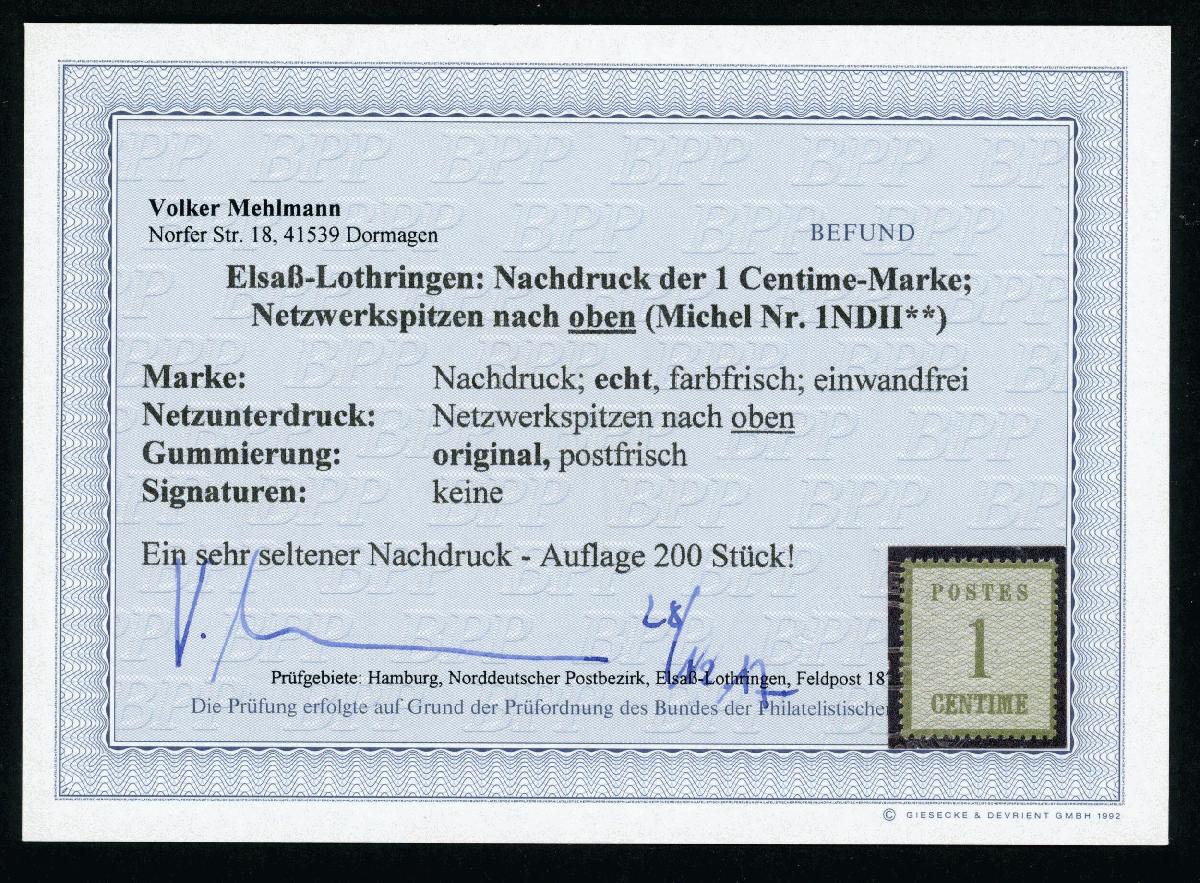 | Prüfgebiet: | Norddeutscher Postbezirk 1870 - 1871 Elsass-Lothringen |