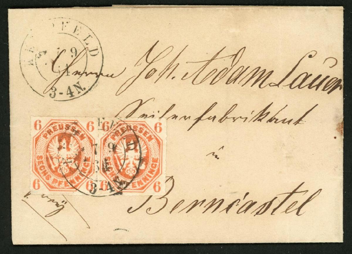 | Zusatzinformationen und Suchstichworte: | Klüttermann - 4. Auktion Auktionstermin: 28. Juli - 5. August 2022 Los 989 Altdeutschland Preussen KEMPFELD 7 9 64, K2 a. kleinem Brief mit Paar 6 Pfg., etwas oxid. sonst einwandfrei, KB Wasels Ausruf 45,00 EUR |