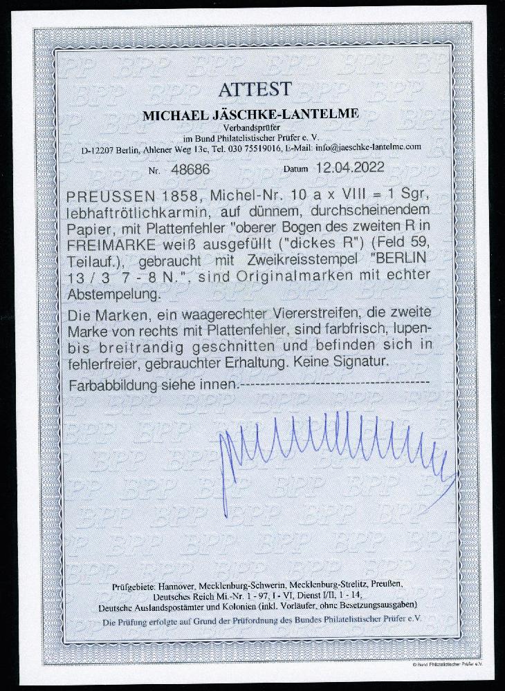 | Prüfer: | Jäschke-Lantelme, Michael (BPP (Bund Philatelistischer Prüfer)) |