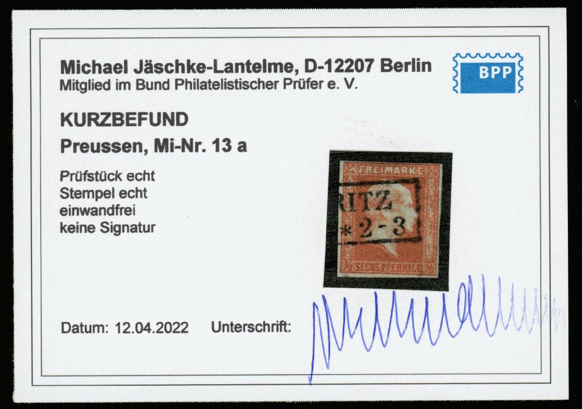 | Prüfer: | Jäschke-Lantelme, Michael (BPP (Bund Philatelistischer Prüfer)) |
