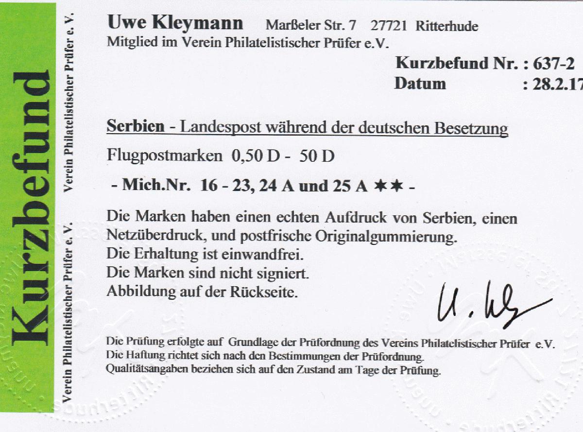 | Prüfgebiet: | Deutsche Besetzung WK 2 Serbien |