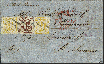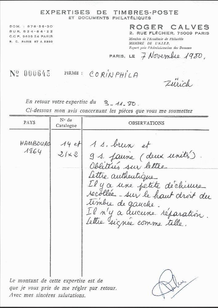 | Zusatzinformationen und Suchstichworte: | 378. Auktion Heinrich Köhler Auktionstermin 21.-26. März 2022 Los 59 9 Schilling gelb, zwei Einzelwerte, abwechselnd geklebt mit 1 Schilling braun, alle farbfrisch und weitgehend gut gezähnt, mit sauer aufgesetzten Strichstempeln und nebengesetztem Ovalstempel „HAMBURG 30 1 66“ auf komplettem Faltbrief über St. Thomas nach Maracaibo, Venezuela. Die linke 9 Schilling kleiner verklebter Einriss, die rechte geglättete Bugspur, die 1 Schilling oben kleiner Randspalt und der Brief in den Faltungen teils getrennt bzw. gestützt. Insgesamt ein durchaus attraktiver und außerordentlich seltener Brief aus der bekannten Swift, Penny & Co.-Korrespondenz. Fotoattest Huylmans BPP (2021) Ausruf 5000,00 EUR Zuschlag 10.500,00 EUR (aus der Sammlung Erivan Haub) |