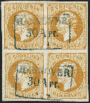 | Zusatzinformationen und Suchstichworte: | 378. Auktion Heinrich Köhler Auktionstermin 21.-26. März 2022 Los 82 3 Groschen schwärzlichgelborange im Viererblock, farbfrisch und voll- bis breitrandig, sauber entwertet durch paarweise aufgesetzten blauen Rahmenstempel „HANNOVER 30 Apr.“. Das rechte senkrechte Paar unauffällig geglätteter Bug, sonst einwandfrei. Fotobefund Jäschke-Lantelme BPP (2021) Ausruf 100,00 EUR Zuschlag 360,00 EUR (aus der Sammlung Erivan Haub) |