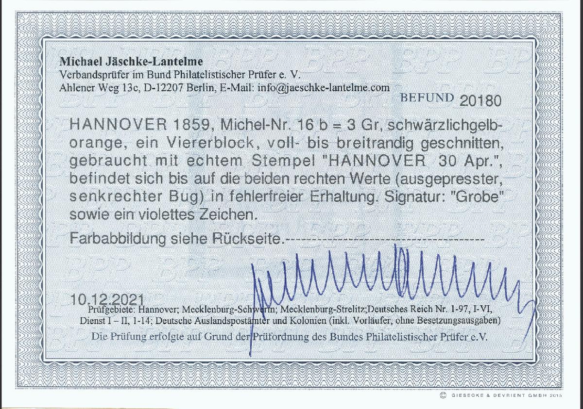 | Prüfer: | Jäschke-Lantelme, Michael (BPP (Bund Philatelistischer Prüfer)) |