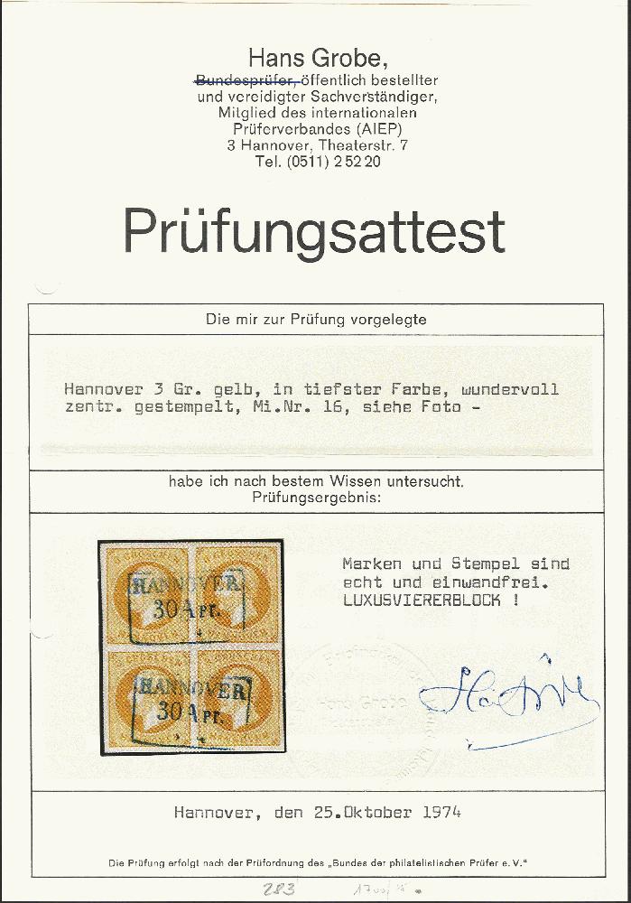 | Prüfer: | Grobe, Hans (BPP (Bund Philatelistischer Prüfer)) |
