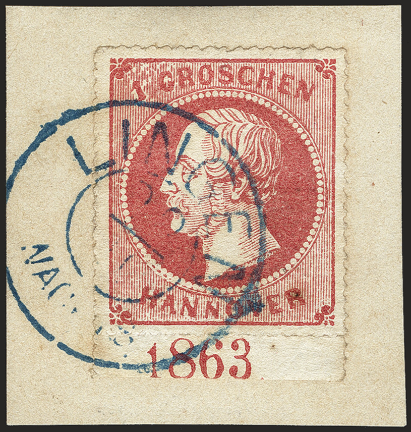 | Zusatzinformationen und Suchstichworte: | 378. Auktion Heinrich Köhler Auktionstermin 21.-26. März 2022 Los 88 1 Groschen rosa, rosa Gummierung, Unterrandstück mit Jahreszahl „1863“ in Stellung III, farbfrisch und gut durchstochen, mit sauberem Doppelkreisstempel von Lingen auf Briefstück, tadellos. Fotobefund Jäschke-Lantelme BPP Ausruf 80,00 EUR Zuschlag 240,00 EUR (aus der Sammlung Erivan Haub) |