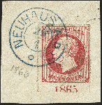 | Zusatzinformationen und Suchstichworte: | 378. Auktion Heinrich Köhler Auktionstermin 21.-26. März 2022 Los 89 1 Groschen rosa, weiße Gummierung, Unterrandstück mit Jahreszahl „1865“ in Stellung III, farbfrisch und gut durchstochen, mit sauberem Doppelkreisstempel „NEUHAUS 29/1“ auf Briefstück, tadellos. Fotobefund Jäschke-Lantelme BPP Ausruf 80,00 EUR Zuschlag 140,00 EUR (aus der Sammlung Erivan Haub) |