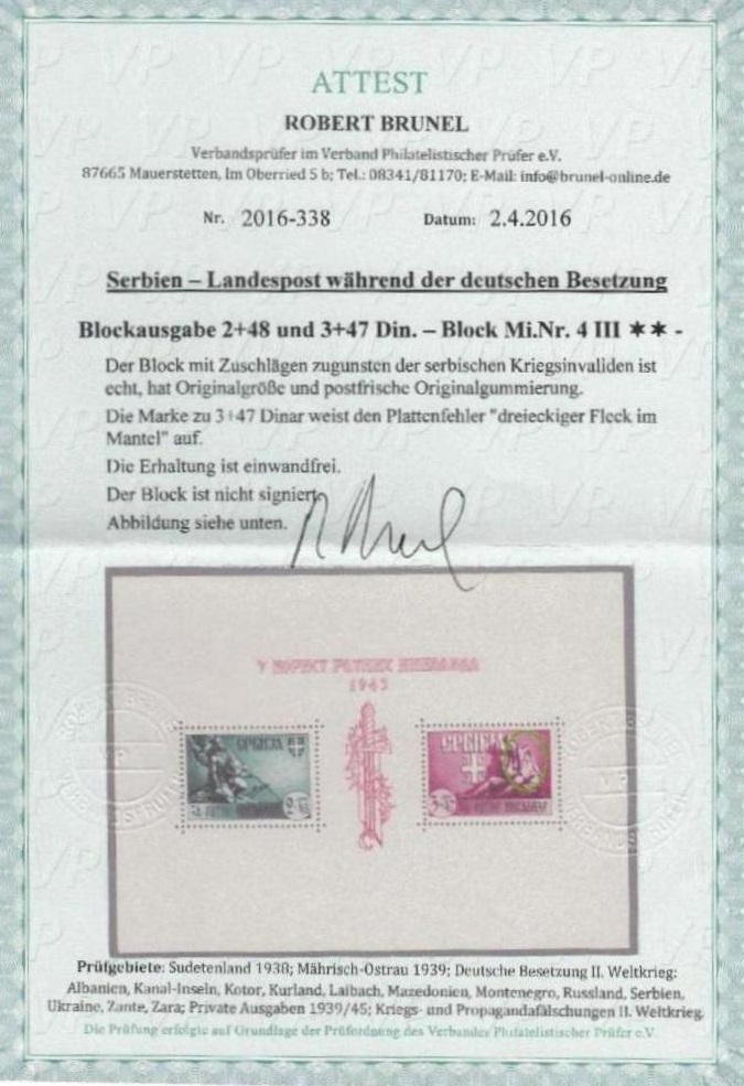 | Prüfgebiet: | Deutsche Besetzung WK 2 Serbien Blocks |