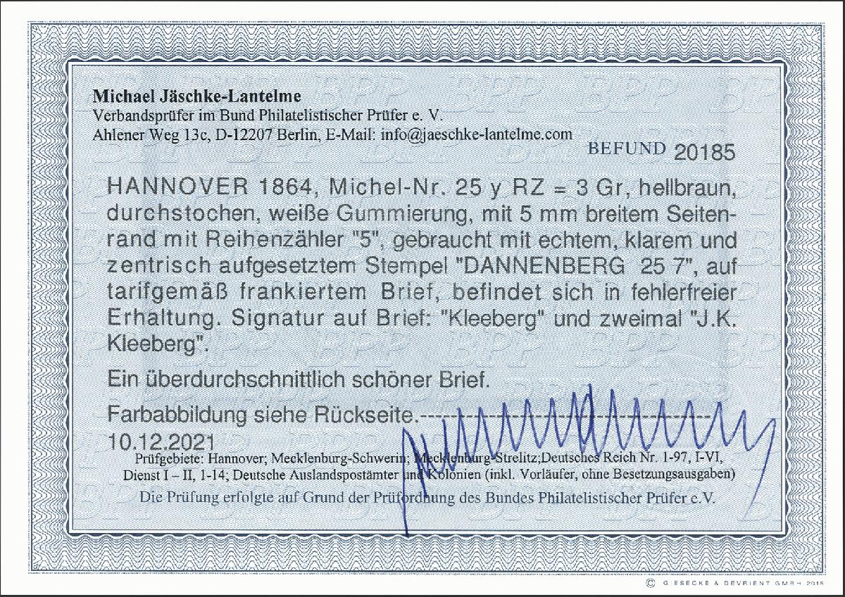 | Zusatzinformationen und Suchstichworte: | 378. Auktion Heinrich Köhler Auktionstermin 21.-26. März 2022 Los 90 3 Groschen braun, weiße Gummierung, rechtes Randstück mit Reihenzähler „5“, farbfrisch und gut durchstochen, mit sauberem Doppelkreisstempel „DANNENBERG 25/7“ auf Hülle nach Frankfurt/Main, tadellos. Signiert Kleeberg und Fotobefund Jäschke-Lantelme BPP Ausruf 150,00 EUR Zuschlag 400,00 EUR (aus der Sammlung Erivan Haub) |