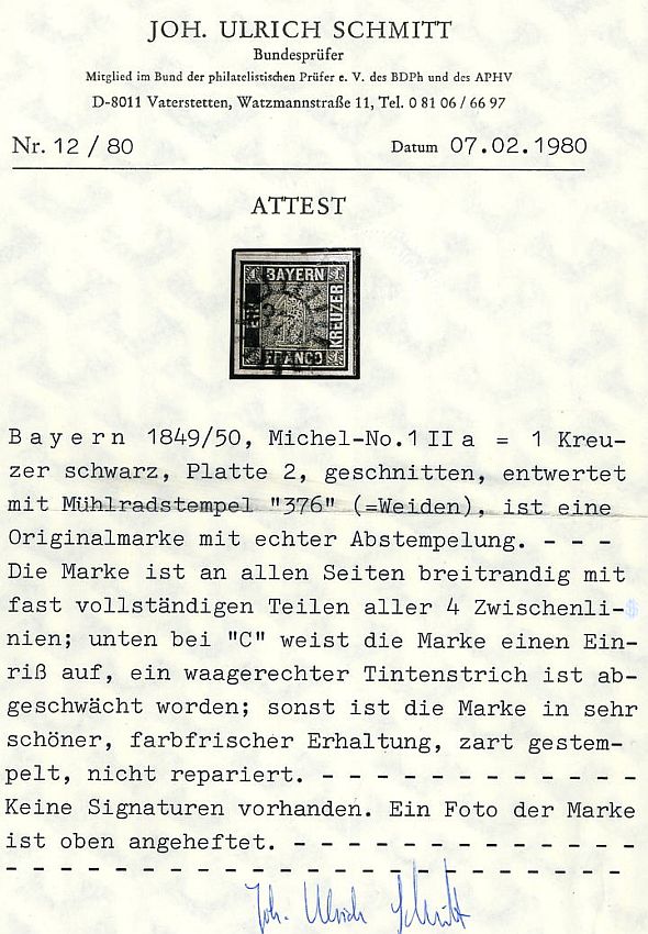 | Prüfer: | Schmitt, Joh. Ulrich (BPP (Bund Philatelistischer Prüfer)) |