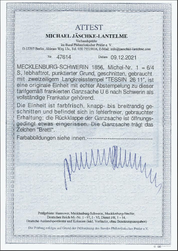 | Prüfer: | Jäschke-Lantelme, Michael (BPP (Bund Philatelistischer Prüfer)) |