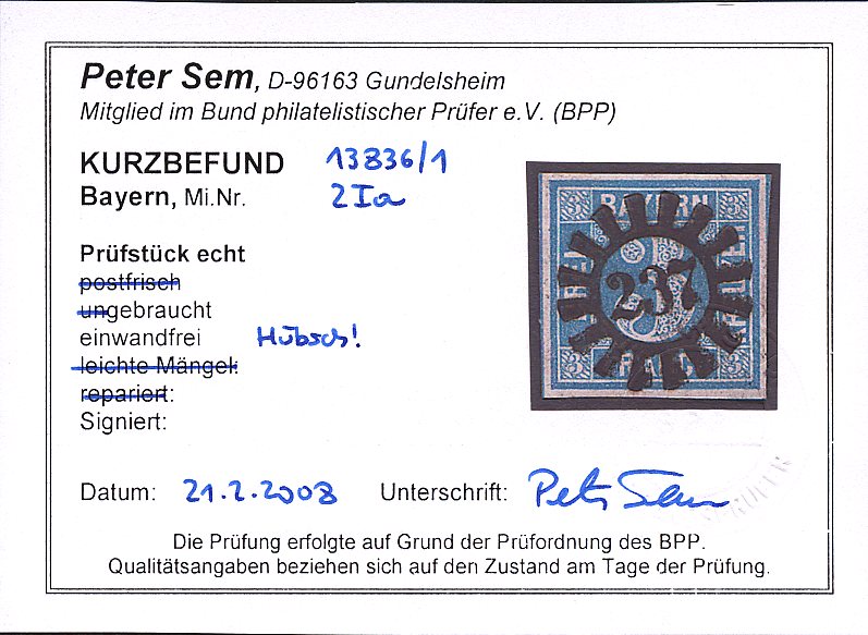 | Prüfer: | Sem, Peter (BPP (Bund Philatelistischer Prüfer)) |