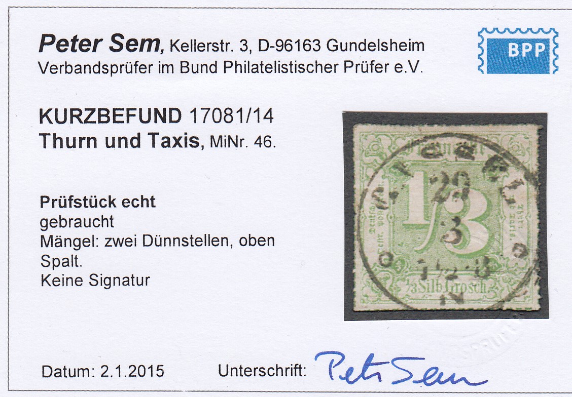 | Prüfgebiet: | Altdeutschland Thurn und Taxis |