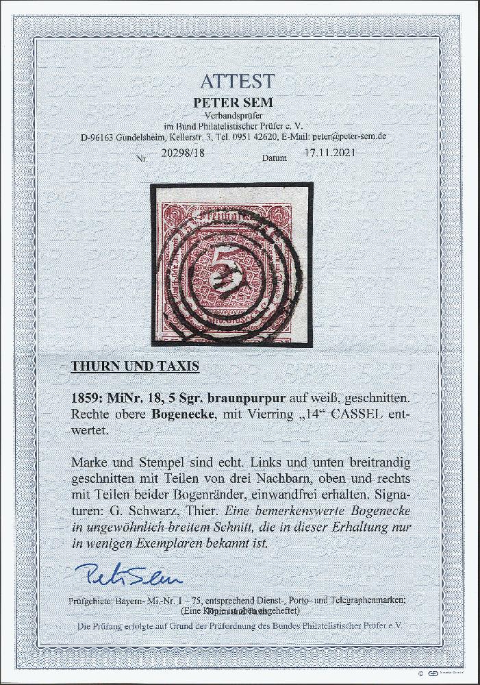 | Prüfer: | Sem, Peter (BPP (Bund Philatelistischer Prüfer)) |