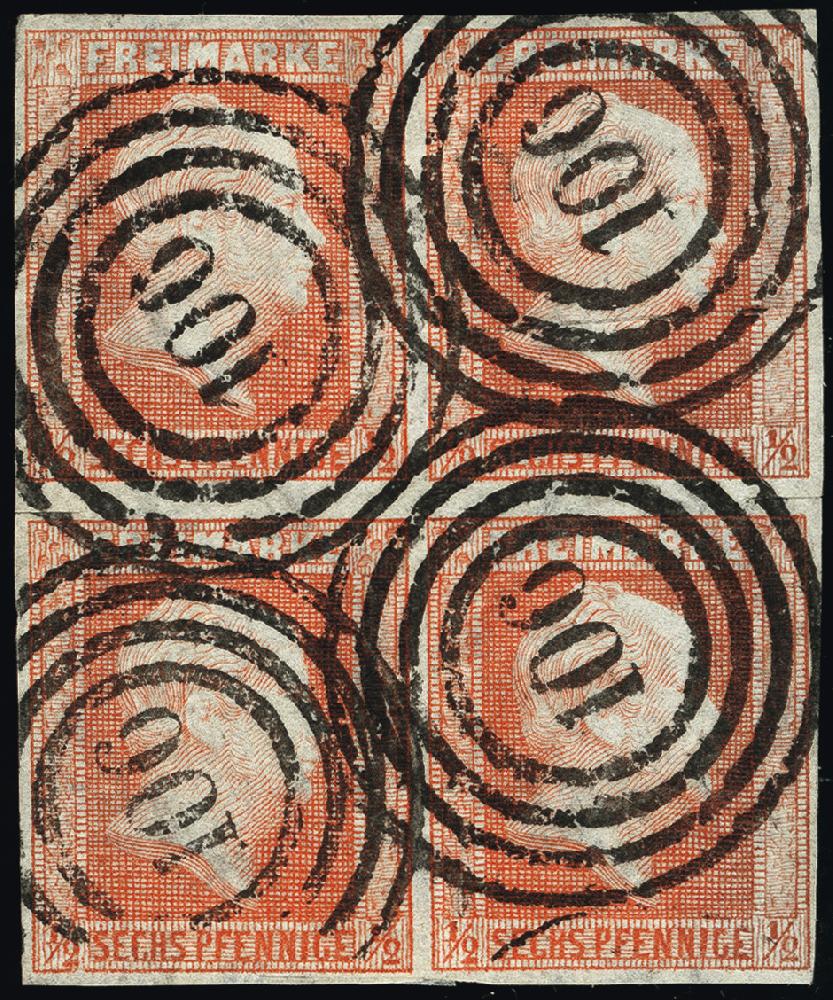 | Zusatzinformationen und Suchstichworte: | 378. Auktion Heinrich Köhler Auktionstermin 21.-26. März 2022 Los 133 ½ Silbergroschen rotorange im Viererblock, farbfrisch und voll- bis breitrandig, sauber entwertet durch Nr. „106“ BERLIN, leicht knittrig bzw. bügig, sonst einwandfrei mit zwei kleinen Vortrennschnitten außerhalb der Markenbilder. Eine seltene Einheit. Fotoattest Jäschke-Lantelme BPP (2021) Ausruf 300,00 EUR Zuschlag 460,00 EUR (aus der Sammlung Erivan Haub) |