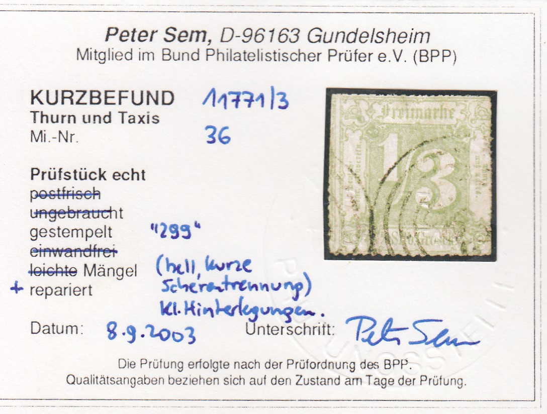 | Prüfgebiet: | Altdeutschland Thurn und Taxis |