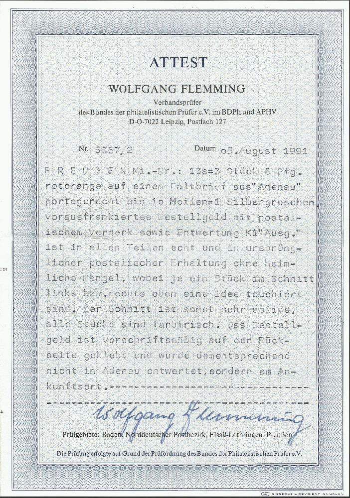 | Prüfer: | Flemming, Wolfgang (BPP (Bund Philatelistischer Prüfer)) |