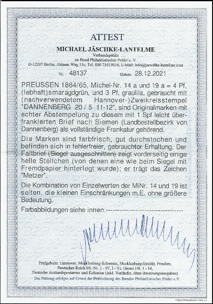 | Prüfer: | Jäschke-Lantelme, Michael (BPP (Bund Philatelistischer Prüfer)) |