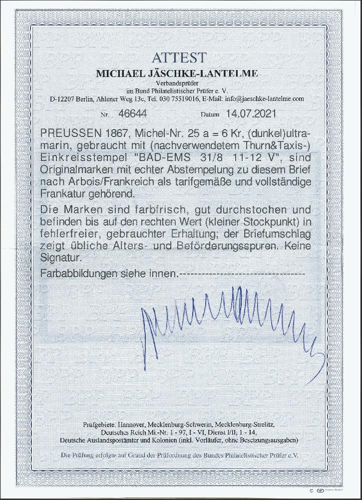 | Prüfer: | Jäschke-Lantelme, Michael (BPP (Bund Philatelistischer Prüfer)) |