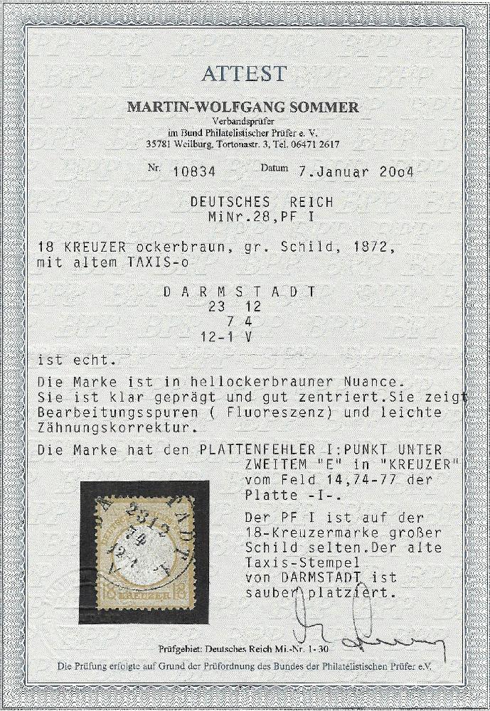 | Prüfgebiet: | Deutsches Reich 1871 - 1918 (Mi-Nr. 1 - 106) |