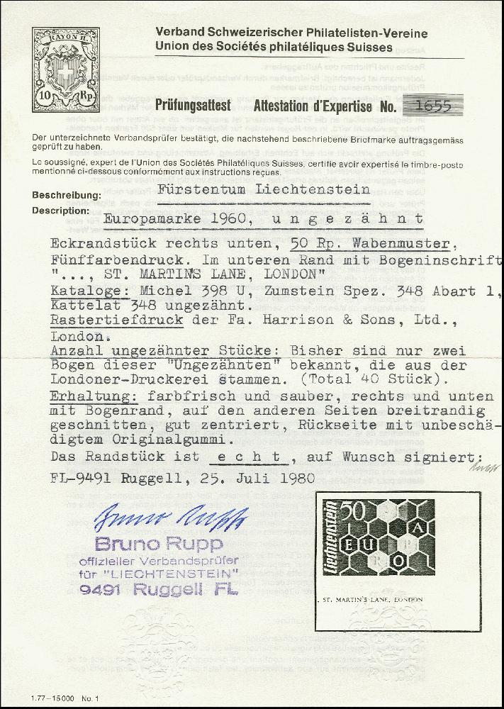 | Prüfer: | Rupp, Bruno (SBPV / ASEP (Schweizerischer Briefmarken-Prüfer-Verband)) |