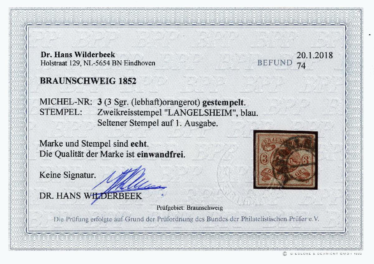 | Zusatzinformationen und Suchstichworte: | 366. Auktion Heinrich Köhler Auktionstermin 19.–24.03.2018 Los 8027 3 Silbergroschen orangerot, allseits breitrandig mit großem Teilabschlag des vorphilatelistischen Doppelkreisstempels "LANGELSHEIM", selten, Kabinett Zuschlag 440,00 EUR |