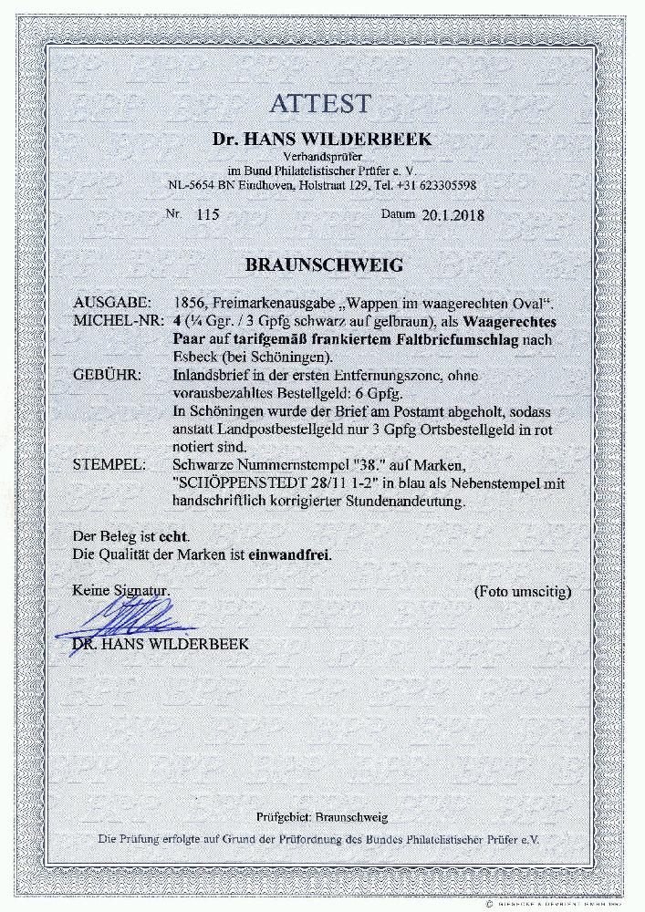 | Prüfer: | Wilderbeek, Hans (BPP (Bund Philatelistischer Prüfer)) |