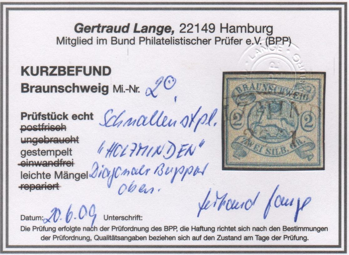 | Prüfer: | Lange, Gertraud (BPP (Bund Philatelistischer Prüfer)) |