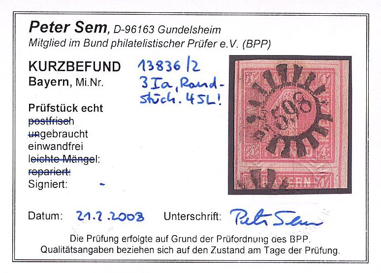 | Prüfer: | Sem, Peter (BPP (Bund Philatelistischer Prüfer)) |