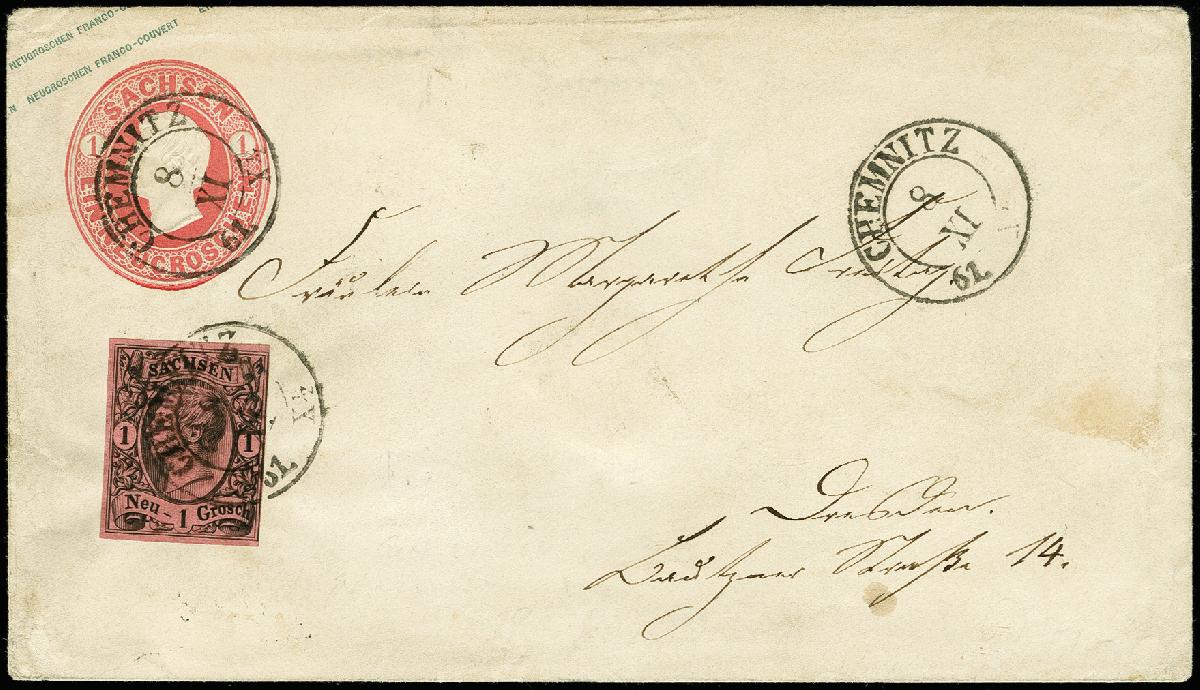 | Zusatzinformationen und Suchstichworte: | 366. Auktion Heinrich Köhler Auktionstermin 19.–24.03.2018 Los 9002 1 Ngr. Johann mit Zufrankatur 1 Ngr. Johann auf feuerrot, voll- bis breitrandig, mit DKr. "CHEMNITZ 8 XI 61" nach Dresden, Fotoattest Rismondo BPP. Zuschlag 320,00 EUR |