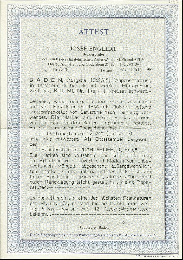 | Prüfer: | Englert, Josef (BPP (Bund Philatelistischer Prüfer)) |