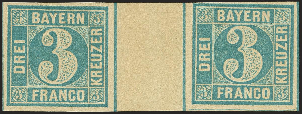 | Zusatzinformationen und Suchstichworte: | 370. Auktion Heinrich Köhler 8. Juni 2019 Los 30 1850/58, 3 Kreuzer blau, Platte 5, waagerechtes Zwischenstegpaar, sehr schön farbfrisch und voll- bis sehr breitrandig, ungebraucht mit frischem Originalgummi und kleiner Falzspur im Zwischensteg, Marken postfrisch; schöne tadellose Erhaltung, ohne Faltung im Steg, Luxus. Unsigniert, Fotoattest Sem BPP (2018) Ausruf 1.000,00 EUR Zuschlag 1.900,00 EUR (aus der Sammlung Erivan Haub) |