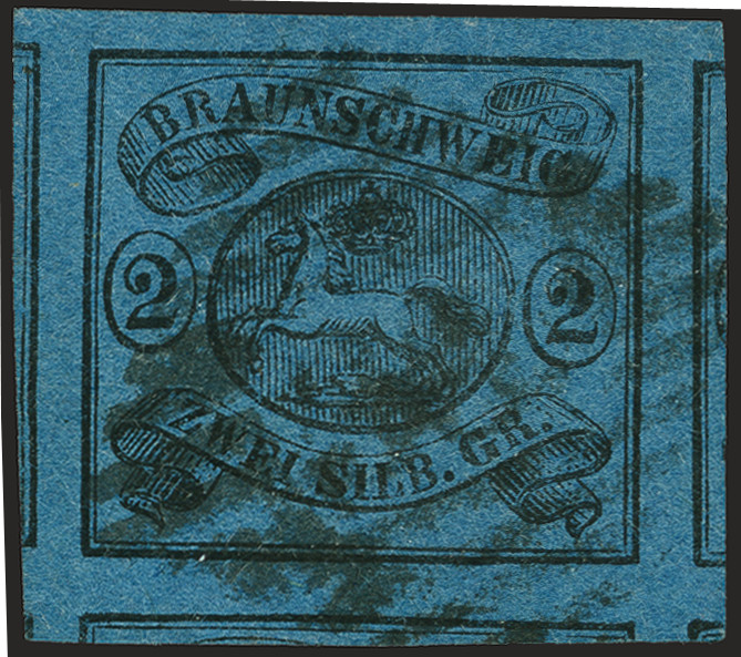 | Zusatzinformationen und Suchstichworte: | 370. Auktion Heinrich Köhler 8. Juni 2019 Los 55 1853, Wappen auf farbigem Papier, 2 Silbergroschen schwarz auf blau, farbfrisch und allseits breit- bis überrandig, seitlich und unten mit Teilen von 5 Nachbarmarken, leicht entwertet durch Nummernstempel. Ein absolutes Ausnahmestück. Signiert HK und Kurzbefund Wilderbeek BPP Ausruf 100,00 EUR Zuschlag 280,00 EUR (aus der Sammlung Erivan Haub) |