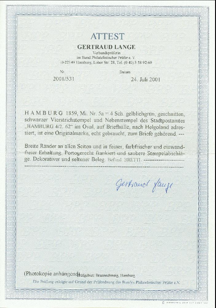 | Prüfer: | Lange, Gertraud (BPP (Bund Philatelistischer Prüfer)) |