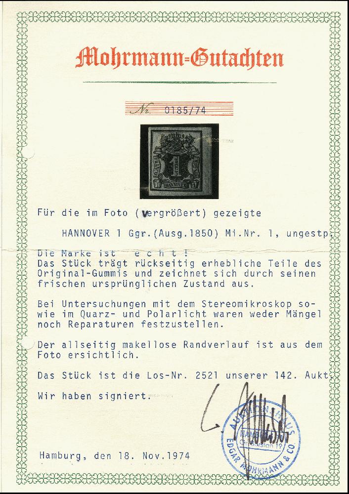 | Zusatzinformationen und Suchstichworte: | 370. Auktion Heinrich Köhler 8. Juni 2019 Los 92 1850, Wappenausgabe 1 Gutegroschen schwarz auf blaugrau in sehr schöner und frischer Farbe, allseits breitrandig mit schmalem Bogenrand rechts, ungebraucht mit kleinen Teilen des Originalgummis und Anhaftungen, wahrscheinlich versehentlich unentwertet geblieben. Eine seltene Marke in sehr schöner und frischer ursprünglicher Erhaltung. Signiert Thier und E. Mohrmann mit Gutachten (1974), Fotoattest Berger BPP (2018) Ausruf 1.000,00 EUR Zuschlag 4.800,00 EUR (aus der Sammlung Erivan Haub) |