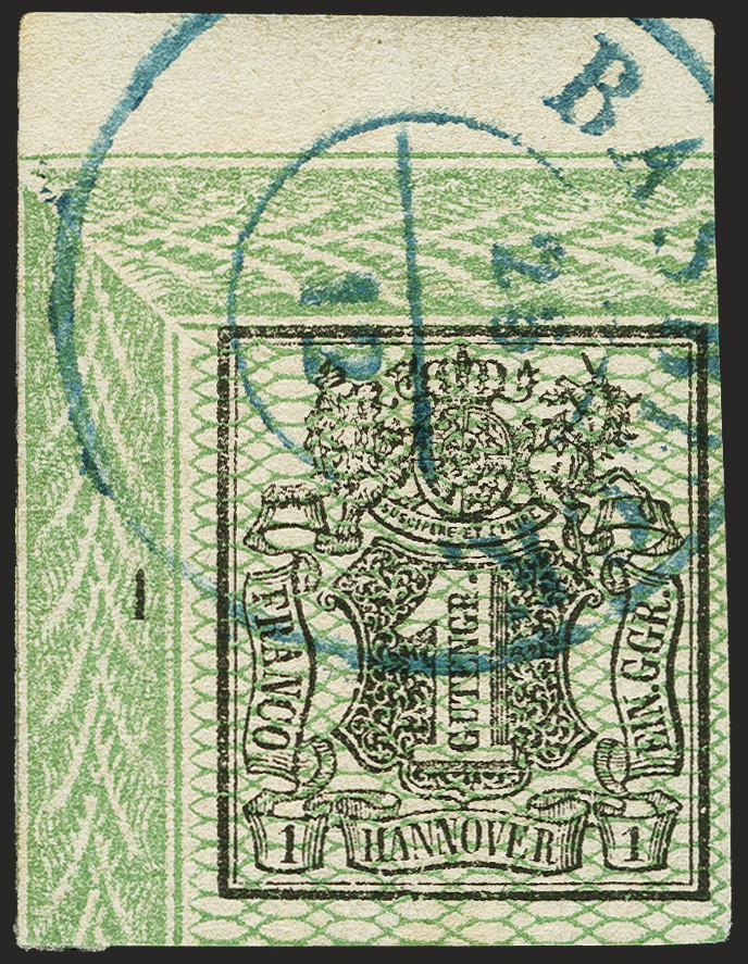 | Zusatzinformationen und Suchstichworte: | 370. Auktion Heinrich Köhler 8. Juni 2019 Los 105 1 Gutegroschen schwarz, grün genetzt, linke obere Bogenecke, breit- bis überrandig mit vollen Bordürenrändern und Reihenzähler "1" der Auflage 1856, schön entwertet durch Doppelkreisstempel "BASBECK 23/12"; rückseitig leichte Papierreste. Kabinett. Fotobefund Berger BPP (2018) Ausruf 200,00 EUR Zuschlag 340,00 EUR (aus der Sammlung Erivan Haub) |
