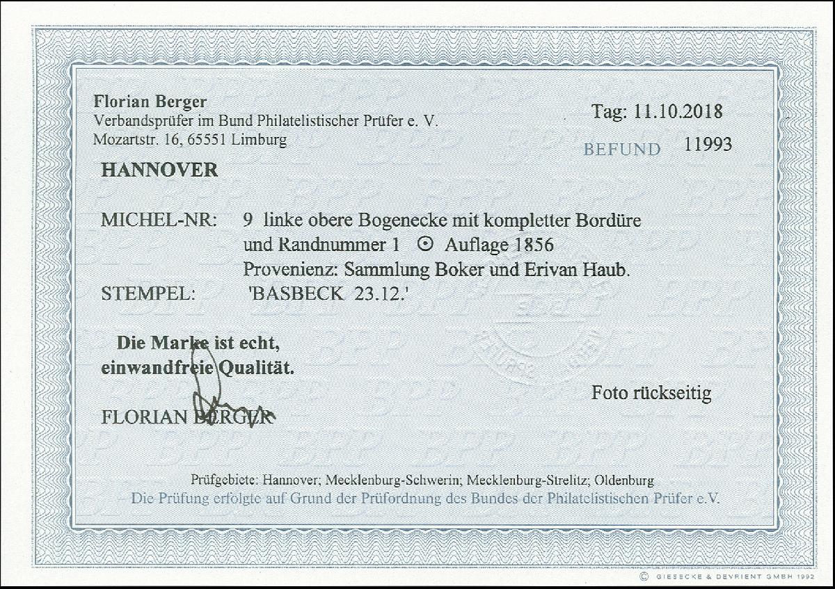 | Prüfer: | Berger, Florian (BPP (Bund Philatelistischer Prüfer)) |