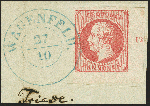 | Zusatzinformationen und Suchstichworte: | 370. Auktion Heinrich Köhler 8. Juni 2019 Los 110 1859, Georg V 1 Groschen rosa, allseits breitrandige rechte untere Bogenecke mit Reihenzähler "12", sehr schön übergehend entwertet durch Doppelkreisstempel "WAGENDFELD 27/10" auf Briefstück, leichte Faltspur außerhalb der Marke, sonst tadellos. Ein sehr schönes Briefstück. Kurzbefund Berger BPP (2018) Ausruf 100,00 EUR Zuschlag 220,00 EUR (aus der Sammlung Erivan Haub) |