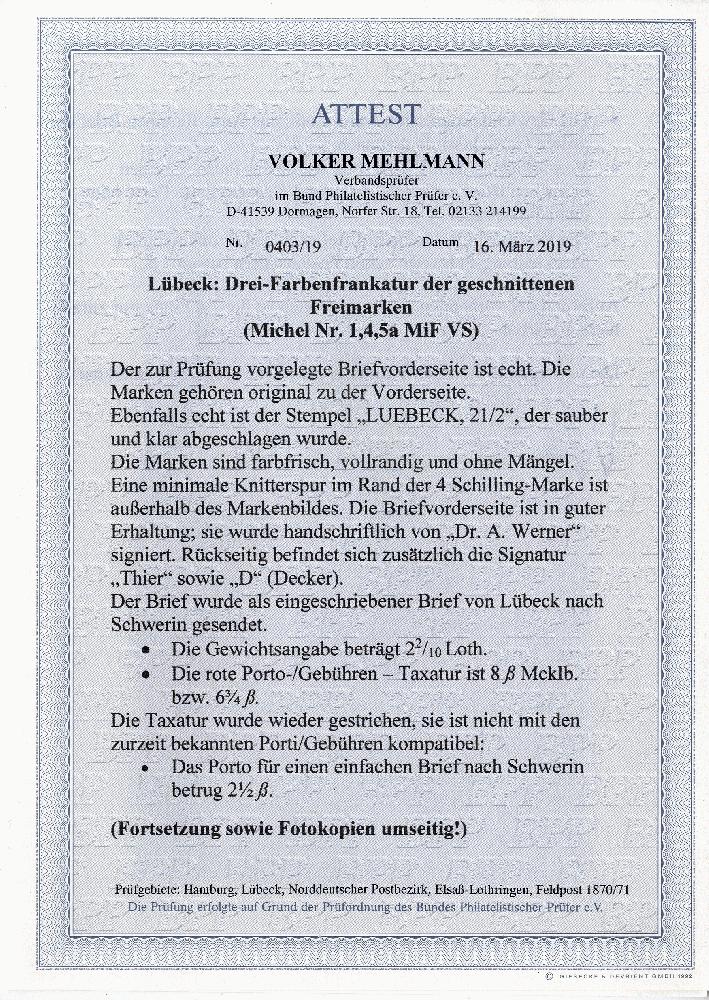 | Prüfgebiet: | Altdeutschland Lübeck |