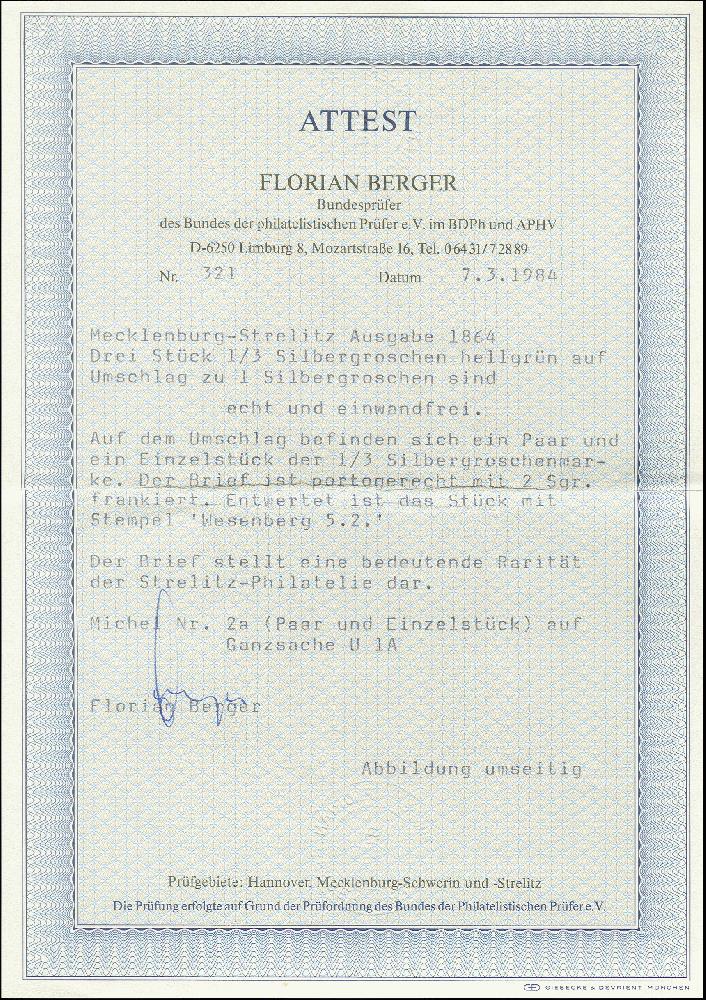 | Prüfer: | Berger, Florian (BPP (Bund Philatelistischer Prüfer)) |